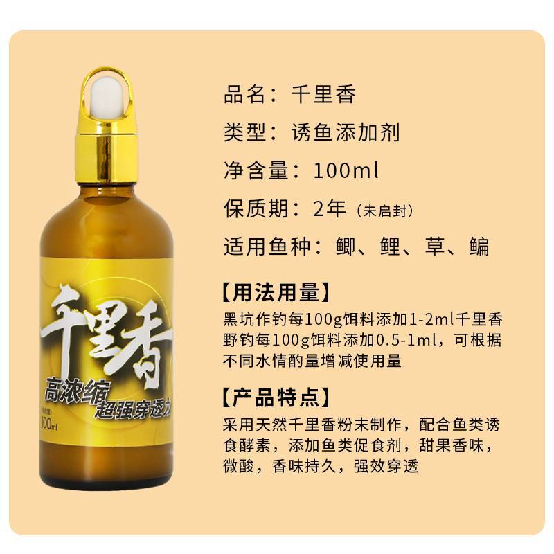✅天然香料制作,强效穿透诱鱼,100ML装,甄选千里香颗粒,低温诱鱼因子!
