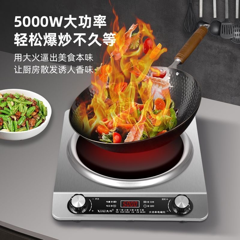 ✅五档火力可调,5000w大功率,轻松爆炒,凹面火包锅,想燃气灶一样的火力!