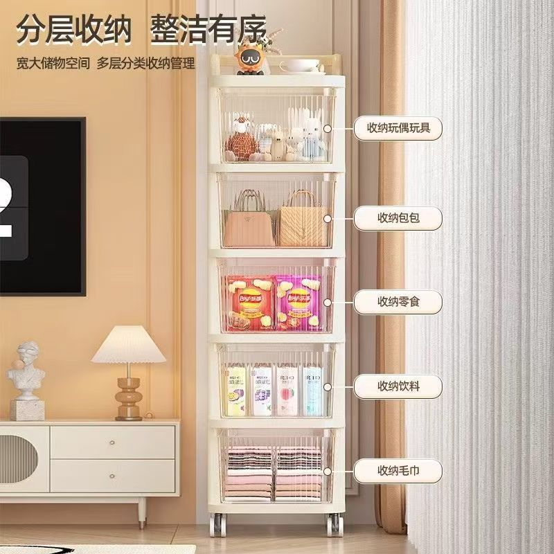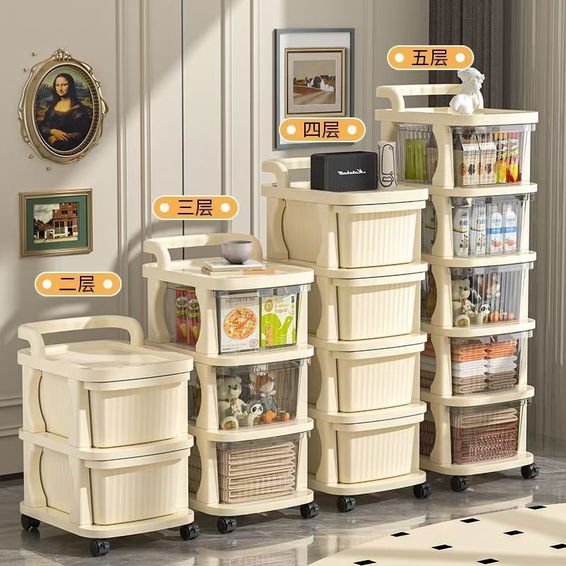 小推车零食奶油风置物架落地可移动宝宝玩具储物架婴儿用品收纳柜